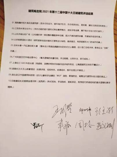 日前,一年一度的“中国十大丑陋建筑评选”在北京举行,活动由RCC瑞达恒旗下媒体建筑畅言网举办,旨在遏制丑陋建筑的频繁出现,弘扬优秀的建筑文化。 据主办方介绍,此次评审落实“适用、经济、美观、绿色”的新时期建筑指导方针,围绕:1.建筑使用功能极不合理;2.与周边环境和自然极不和谐;3.抄袭、山寨;4.盲目崇洋、仿古;5.折中、拼凑;6.盲目仿生;7.刻意象征、隐喻;8.体态怪异、恶俗;9.明知不可为而刻意为之等维度,经由社会公开征集投票,及专家评审团评选,最终确定出2021年中国十大丑陋建筑榜单。 这是建筑畅言网第12次评选中国十大丑陋建筑。 担任本届“丑陋建筑”评选的评委会成员有: 王明贤 中国艺术研究院建筑与艺术史学者、中央美院建筑学院客座教授 顾孟潮 中国建筑学会教授级高级建筑师、著名建筑评论家 布正伟 中房集团建筑设计事务所(综合甲级)的主要创建人、资深总建筑师 周 榕 清华大学建筑学院副教授、著名建筑评论家 曹晓昕 中国建筑设计研究院副总建筑师、大器建筑工作室主持人 王永刚 中国国家画院公共艺术院研究员 车 飞 超城建筑设计事务所创始人、主持建筑师 1、恒大海花岛建筑群(项目地点:海南儋州) 上榜理由:资本任性妄为,破坏海洋生态,形态怪异杂乱,是炫富、媚俗文旅项目的典型。 2、苏州湾文化中心(项目地点:江苏苏州) 上榜理由:用无功能的超尺度形式附会飘带概念,造型浮夸浪费,属于假大空设计的代表作。 3、弘阳广场(项目地点:山东济南) 上榜理由:以枯燥的单一表皮整体覆盖多种功能、超大尺度的建筑体量,危害城市视觉环境。 4、维景国际大酒店(项目地点:北京) 上榜理由:建筑更新改造未能纠正原有设计缺陷,越改越丑,有损首都东大门的城市形象。 5、一汽红旗创新大厦(项目地点:吉林长春) 上榜理由:整体设计思路因袭象形化的形式主义套路,设计语汇自相冲突,影响企业“创新”形象。 6、阿里巴巴华南运营中心(项目地点:广东广州) 上榜理由:毫无逻辑的体量切削,手法粗糙,比例失当,弄巧成拙。 7、G60科创云廊 (项目地点:上海松江) 上榜理由:用虚假、浪费的夸张手段盲目追求城市奇观,以掩盖建筑主体的平庸设计。 8、大王山朗豪酒店 (项目地点:湖南长沙) 上榜理由:刻意求怪,忸怩作态,徒增成本,既不合理又不美观。 9、中国建筑科技馆 (项目地点:湖北武汉) 上榜理由:设计以象形手法模仿“种子”造型,牵强附会,背离当代建筑科技主题的表达。 10、长庆路跨金堤河桥(龙凤桥) (项目地点:河南濮阳) 上榜理由:形式低俗,手法拙劣,画蛇添足,有悖现代桥梁结构的基本逻辑和美学精神。 【结语】 随着经济发展与生活水平的提高,人们向往美观、经济、既能体现城市风貌又富有文化内涵的建筑,渴望在城市一角透过视觉的震撼,发现人文之美。毕竟城市建筑是人们生活的背景,与大家息息相关,所以备受关注。 回顾入围本次评选的建筑,有的成为了媒体的调侃对象,有的只是当地居民的自我吐槽,当城市建筑缺乏整体性与远见性的思考,高楼与高楼之间互相争奇斗艳,本意是看齐新时代美学设计的造型,也意外地成为了丑建评选的减分项。