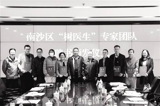 广东建设报讯 记者姜兴贵、通讯员陈超颖报道:为推动南沙区城乡绿化高质量发展, 1月12日,广州市南沙区住房和城乡建设局组织举行了南沙区“树医生”专家团队聘书颁发仪式,正式成立广州市首支“树医生”专家团队。南沙区水务局、土地开发中心、各镇街、建设中心、明珠湾管理局、产业园管理局分管领导及相关负责人约40人参加仪式。 此次受聘为南沙区“树医生”专家团队成员的专家共有9位,包括了来自华南农业大学林学与风景园林学院的教授和博士、园林绿化和生态专家研究员、高级工程师等,涵盖了风景园林设计、施工管理、园林树木、土壤学、病虫害、园林植物开发与应用及大树古树复壮等研究方向。 仪式现场,南沙区管委会副主任史勇、市管一级调研员王志荣为专家们颁发了“树医生”聘书。 仪式上还宣贯了《国务院办公厅关于科学绿化的指导意见》《广东省人民政府办公厅关于科学绿化的实施意见》和《广州市关于科学绿化的实施意见》,明确了什么是科学绿化、怎么做好科学绿化,以及“树医生”的工作职责。 仪式后,专家们一行到蕉西路中央绿化带、蕉门公园进行现场调研,分析了高山榕、桂花、樟树、大腹木棉等植物长势不良及存在的问题,强调要改善土壤条件,加强肥水管理,并按照“预防为主、综合防治”原则病虫害防治。
