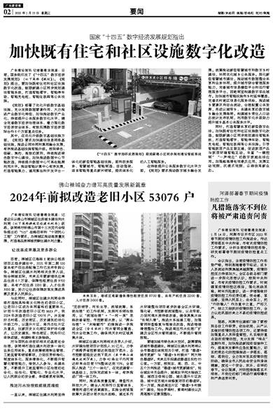 广东建设报讯 记者誉建业报道:日前,国务院印发了《“十四五”数字经济发展规划》(以下简称《规划》)。《规划》提出,要加快既有住宅和社区设施数字化改造,鼓励新建小区同步规划建设智能系统,打造