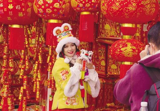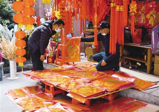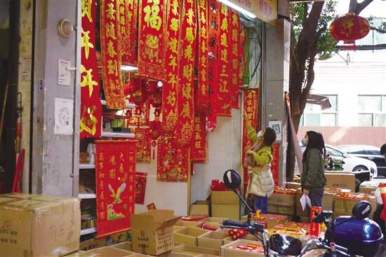 各式各款的福字让老广挑花了眼,店铺老板热情为客人介绍。 |