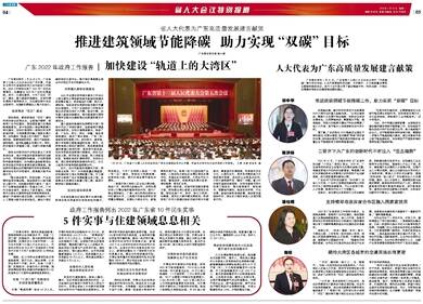 广东建设报讯 1月21日,广东省第十三届人大五次会议举行“代表通道”集中采访活动,9名代表围绕科技创新、乡村振兴、文化高质量发展等主题接受媒体采访,其中4位代表分享了碳达峰碳中和、科技创新、