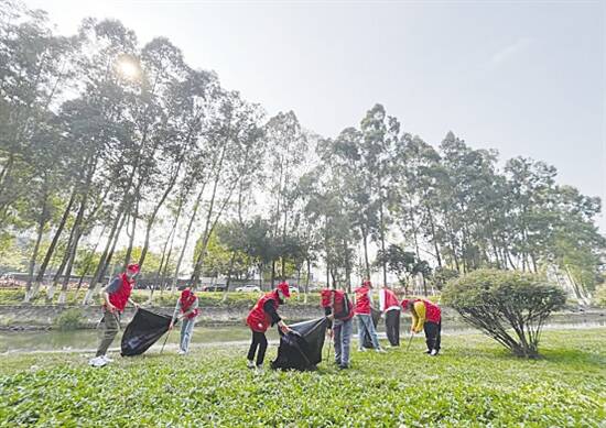 广东建设报讯 记者誉建业报道:绿水青山就是金山银山。3月2日,中建三局二公司广东分公司广州太平金融大厦、广铝远大大厦、工业大道等项目组织志愿者,到广州汇彩路开展河道堤岸垃圾清理活动。 在清理现场,志愿者们分工协作,手拿铁钳、垃圾袋,将河坡杂草、河道内枯树枝、塑料袋、饮料瓶,以及堆积的废弃物等清理干净并统一收集运走。“政府治理河涌成效明显,看着河道变干净整洁了,环境更加优美了,我们很开心。”谈及汇彩路河道堤岸的美丽“蝶变”,家住附近小区的李女士不住地点赞。 当天,志愿者们还不忘向沿途经过的市民群众宣传保护河道环境的理念,动员大家积极主动参与到河道清理活动中来。志愿者们纷纷表示,希望以后能有更多的机会参加这样的活动,为绿化广州、绿化家园出一份力,让天更蓝、山更绿、水更清、共同的家园环境更加优美。