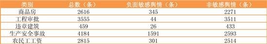 商品房、工程审批、违章建筑、生产安全事故、农民工工资五方面舆情信息统计