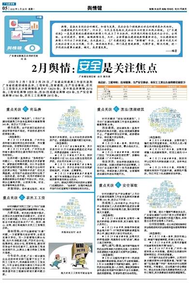 舆情,直接关系到社会的稳定、和谐与发展,是社会各个领域舆论动态的晴雨表和风向标。 住建领域涉及的范围广、行业多,与民生息息相关,是社会关注的重点和热点领域。《广东建设报》一直高度重视住