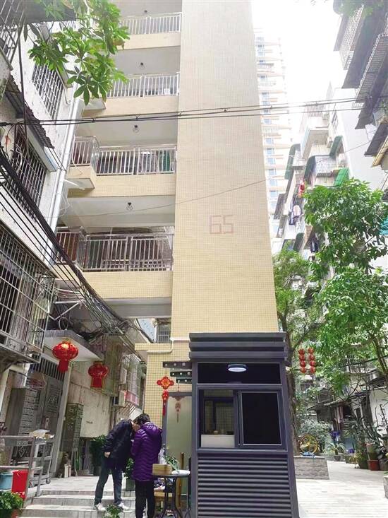 广州市越秀区贤藏街社区小区加装电梯的电梯井外立面与原建筑色彩、材质基本保持一致,从而确保整体建筑外观的协调。 誉建业/摄 |