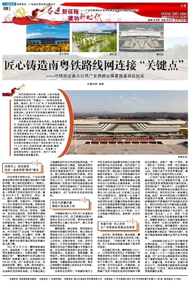时代发展如列车一路向前,人民对祖国大好河山的时代记忆,也伴随着一条条祖国铁路线网当中的“关键点”——铁路站房连接起来。据统计,至“十三五”末,广东铁路线网建设发展迅速,在营铁路里程达到4888千米,高速铁路里程2065千米,实现了广东“市市通高铁”的发展目标。这其中不乏中铁建设集团南方工程有限公司(以下简称中铁建设南方公司)项目团队攻坚克难、奋勇拼搏的付出。 中铁建设由铁道兵转业而来。抗美援朝战争中,铁道兵创造了“打不烂、炸不断的钢铁运输线”。经济建设时期,又在黎湛、鹰厦、南福、包兰、嫩林、贵昆、成昆、京原、襄渝、京通、青藏、南疆、通霍、兖石等52条铁路建设中立下丰功伟绩。“兵转工”后,中铁建设的建设者赓续红色基因,传承铁道兵精神,在全国承建了200座铁路站房。而中铁建设南方公司是中铁建设分设在广州的区域子公司,从“十三五”至今,在深茂铁路、梅汕铁路、赣深铁路、京港铁路等高铁线上,共参建14座铁路站房和1座动车所,助力广东铁路线网建设高质量发展。 迎难而上 攻克险阻 完成一座座铁路“器官”建设 作为改革开放排头兵,广东在长期高速发展的同时面临着区域发展不平衡的问题,珠三角在经济增长上一骑绝尘,粤东西北地区却由于历史和自然条件因素经济基础薄弱。基础设施建设不足则进一步限制了这些区域的对外交流,截至2018年6月,省内阳江、茂名、湛江、梅州、河源等市仍未开通高铁。 振兴发展,交通先行。中铁建设南方公司以高度的历史使命感,积极投身粤东西北高铁建设。深茂铁路线上他们承建了阳东站、阳江站、阳西站、马踏站、电白站五座站房,结束粤西不通高铁的历史,将湛江到广州车程缩短至3个小时;梅汕铁路上以丰顺东站、揭阳站两座站房,结束了粤东不通高铁的历史;赣深高铁线上承建了光明城站、河源东站、河源北站、龙川西站及和平北站,不仅完成了广东全省“市市通高铁”的最后一块拼图,还让赣州、河源、惠州、东莞与深圳互联互通,为广东均衡发展、赣南与东南沿海区域性经济融合装上新引擎。 2021年12月10日,赣深铁路通车运行。该线路是“八纵八横”高速铁路网的重要组成部分,对落实国家“中部崛起计划”“赣闽粤原中央苏区振兴发展规划”战略意义重大。这条线路全长436.367公里,在广东段设有10站,沿线途经河源、惠州、东莞、深圳等地市。 河源东站雨棚钢结构造型复杂,存在连续的空间异形曲面。公司通过建立三维模型进行设计和成型效果检查,严格控制构配件加工精度,选取液压顶升法施工,加快施工进度;河源北站站场具有区域地势起伏大,道路狭窄的特点,施工材料运输存在较大困难,项目主动帮助当地拓宽硬化村道,优化构配件加工尺寸,多环节打通运输线,成为赣深铁路广东段首个消防设施检测合格的站房;深圳光明城站比广东段其他站房晚半年中标进场,却用不到一年时间弯道超车,在广东段率先完成消防验收。 安全与质量并重 高效打造品质工程 中铁建设南方公司作为广东高铁站房建设的主力军,在工程建设过程中,始终以安全文化为引领,将对生命的尊重和敬畏之心融入安全生产,真心关爱和保护劳动者。 赣深铁路、梅汕铁路、深茂铁路沿线铁路站房建设项目较多,随之面临的便是庞大的工人队伍的安全问题。中铁建设南方公司多措并举保障项目建设工人的安全,在做好培训、交底、防护的基础上,公司在站房建设中引入铁路工程建设安全生产事故预警与卡控督办系统,对各项目实现信息化安全防控,做到监管到人、实地签认、智能提醒、强制执行。同时在钢结构雨棚上印贴全生命周期二维码,直观展示钢结构工程管理流程,设置框架柱信息标识牌,展示从钢筋绑扎到混凝土浇筑的各节点信息,有效指导现场施工。 在保安全的同时,中铁建设南方公司的各项目在进度履约和施工品质方面始终是行业中的佼佼者。他们创造了10个月内完成深茂铁路5座站房施工任务的高效记录;梅汕线上丰顺东站被国铁集团专家誉为“近几年同等规模车站中难得一见的精品站”,和揭阳站一起被树为全线标杆站房;赣深高铁建设过程中先后6次获得业主通报表扬,在中国铁路广州局集团2020年下半年铁路建设项目施工企业信用评价中,项目部以满分300分的高分在25家施工企业的评比中脱颖而出,荣获第一名并拿下“A+级评价”。2020年11月,赣深铁路站房项目在施工质量及现场标准化建设上的突出表现获得深圳建设指挥部高度肯定,在赣深铁路精品工程和样板工程示范段平推检查中从18个标段、12个工点检查中脱颖而出,荣获第一名的好成绩。 党建引领 民心关怀 为广东铁路站房建设添姿彩 近年来,深茂铁路、梅汕铁路、赣深铁路等项目分别斩获创优样板工程、先进党组织、“开路先锋”等十几个奖项,为广东铁路站房建设增添了更多样的姿彩。 在党建引领方面,赣深铁路GSSG-15、18标项目部党员加入中国铁路广州局集团有限公司深圳工程建设指挥部赣深铁路联合党总支,并在联合党支部领导下开展工作。通过运用各方资源,联合开展一系列专业培训、专题讲座、业务论坛、技术比武、廉政教育等活动,搭建了党员干部成长进步的阶梯和干事创业的舞台,实现了“建一个项目,育一流队伍”的目标。传承“党支部建在连上”的优良传统,实现党组织覆盖率