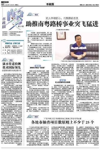 广东建设报 指导单位:广东省住房和城乡建设厅 主办单位:广东建设报社 协办单位:广东省市政行业协会 编辑/余月 美编/李尚松 校对/邓新灵