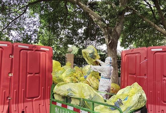广东建设报讯 记者陈小珊、通讯员全碧芳报道:本次疫情发生以来,广州市白云区松洲街槎龙村全力协调32名环卫工人和12名消杀人员,迅速开展消杀保洁工作,日均清运垃圾约2.6吨,全力保障垃圾日产日清。 深入风险区域保洁消杀 11月1日上午10时许,环卫工人邓先兵、消杀人员陈建平和专项垃圾收运员韦国义“三人小组”身穿防护服,驾驶环卫车前往长园街三巷某居民住处,到达后,对居民门口处消毒、收取垃圾后、再对门口区域消毒。这是环卫“三人小组”在风险区域的工作常态。 “一天下来,收集的垃圾大概有10多袋,加起来有100公斤左右。”邓先兵提到,虽然辛苦,但大家都会坚持,只有这样,才能战胜疫情。晚7时许,匆忙结束晚餐的他们,又开始了上门生活垃圾收集、消杀、清运“三部曲”。 “封控在家的市民如有上门收垃圾、燃气配送等需要,可在小程序上报,后台会快速转派,安排处理。”白云区城管局环卫科工作人员谢辉前来槎龙村支援环卫保洁管理工作,他告诉记者,他们在居民群里推广“白云城管抗疫小助手”小程序,一收到环卫方面的工单,则会安排 “三人小组”上门处理,“希望以最快的速度,保证风险区域居民的基本生活需求,尽最大可能降低垃圾带来的传播风险。” 沿用 “三人小组”作业模式 “在槎龙村,环卫‘三人小组’模式也继续沿用,保障垃圾日产日清。”据介绍,今年四、五月份,针对风险区域的垃圾收集转运消杀,该局在白云湖街大冈村探索建立了垃圾消杀、收集、转运的环卫“三人小组”作业模式。随后在支援其他镇街时,也继续沿用这一作业模式。即结合抗疫小助手小程序、工作人员上门核酸采样或派送物资时机,通知住户将垃圾打包放置在门口,“三人小组”严守操作规程、精准协同作业,实行边消杀、边收集、边转运。 谢辉介绍,在中风险区域,他们还会结合居民下楼做核酸的时间,在固定点位摆放好垃圾桶,方便市民投放垃圾,随后环卫工人及时打包,由专人专车专线收运,直达垃圾焚烧场,形成闭环管理,有效减少病毒外溢。 日均清运垃圾约2.6吨 在槎头万龙二街,环卫工人钟光辉身穿隔离服,驾驶小型扫地车,沿街来回清扫。57岁的钟光辉来自湖南,在环卫行业已有15年,他坦言这是距离疫情最近的一次,“我们目前按早中晚三班次轮班,早班凌晨4点多就上岗,晚班则要干到晚上11点,工友们都在坚守,没有人退缩。” 记者了解到,除了上门收垃圾,环卫工人还要负责对槎龙村重点区域,以及主次干道、内街巷及公共区域开展全覆盖清洁消杀,打包转运风险区域的专项垃圾等。“每个环节都要细心,做到安全规范。”环卫工人曾广兴告诉记者: “无论是装上垃圾,还是清扫收运,整个过程都是密闭。” 目前,白云区槎龙村风险区域共有32名环卫工人、12名专业消杀人员在开展保洁消杀工作,保洁消杀覆盖面积约4.6万平方米,日均清运垃圾约2.6吨,包括医疗垃圾、专项垃圾、其他垃圾。