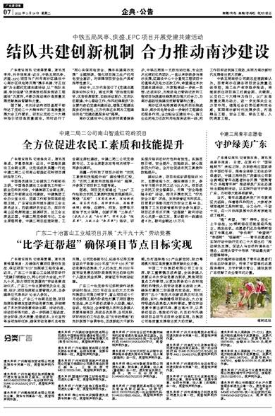 广东建设报讯 记者蒋雯菁,通讯员李帅、孙华强报道:近日,中铁五局凤亭、庆盛、EPC项目与广州市南沙区建设中心南沙区供电局开展“携手共建、守正创新”为主题的党建共建活动,以“‘结队共建、