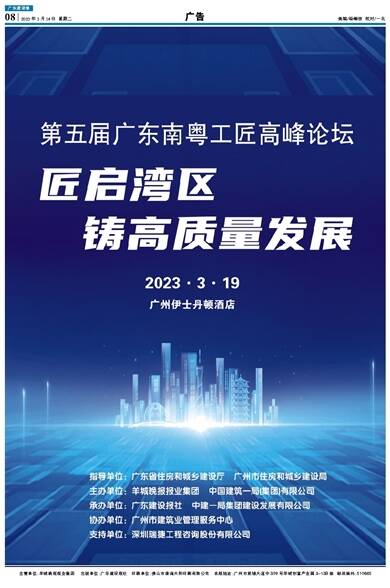 广东建设报 美编/杨榆洁 校对/一北 2023 年3月14日 星期二 主管单位:羊城晚报报业集团 出版单位:广东建设报社 印刷单位:佛山市南海天阳印刷有限