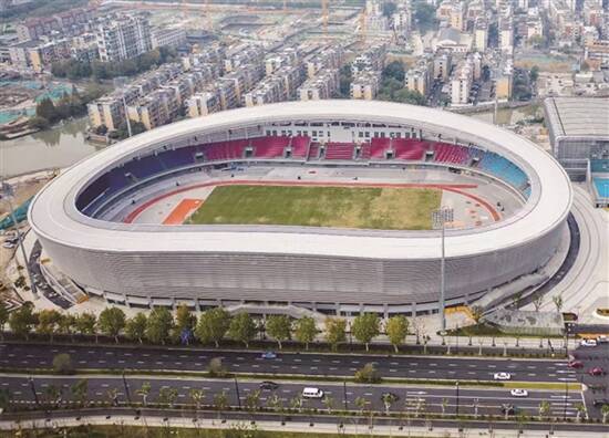 富阳银湖体育中心采用钢结构材料搭建的临时看台,便于赛后拆除。 |