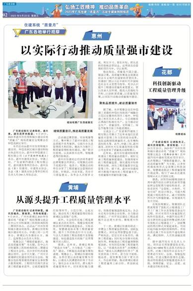 广东建设报讯 记者陈克正,通讯员谢敏飘、曾俊报道:9月21日至23日,2023年广州市住房和城乡建设系统“质量月”现场观摩交流会(花都分会场)在中建四局中建映花悦府项目举行。此次观摩以