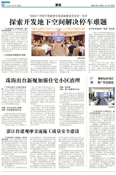 广东建设报讯 记者唐培峰、通讯员吴景辉报道:近日,为有效利用地下空间,推动地下智能停车场设施设计建设和管理,由广州市市政公路协会和广州市停车场行业协会共同举办的“2023广州地下