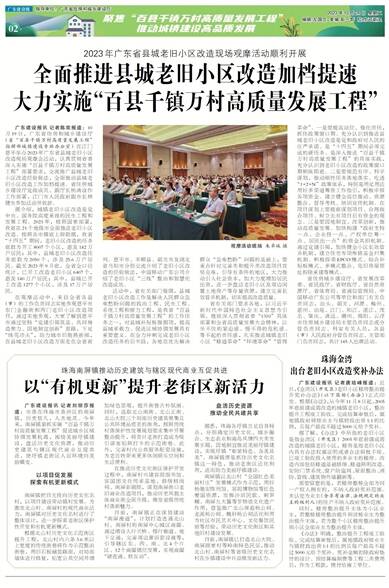 广东建设报讯 记者陈欢报道:10月19日,广东省住房和城乡建设厅(省“百县千镇万村高质量发展工程”指挥部城镇建设专班办公室)在江门恩平举办2023年广东省县城老旧小区改造现场观摩