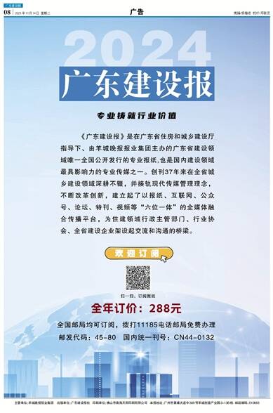 广东建设报 2023 年11月14日 星期二 美编/杨榆洁 校对/邓新灵 主管单位:羊城晚报报业集团 出版单位:广东建设报社 印刷单位:佛山市南海天阳