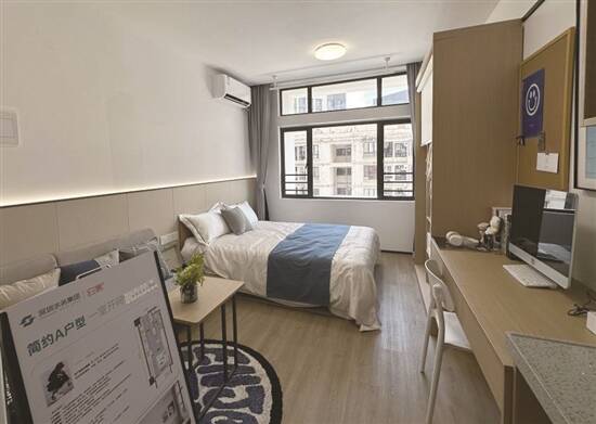 环水泊寓35㎡的一室开间为年轻人提供独立简约的生活空间。 (蒋雯菁/摄) |