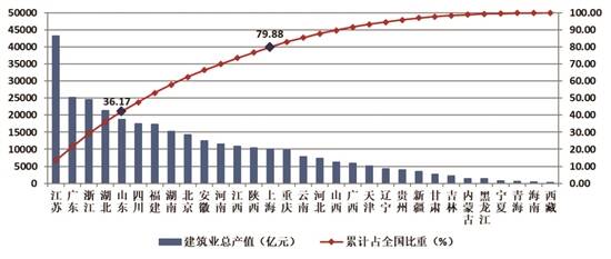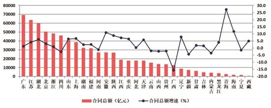 近日,中国建筑业协会发布《2023年建筑业发展统计分析》。统计数据显示,全国建筑业企业完成建筑业总产值315911.85亿元,同比增长5.77%;完成竣工产值137511.82亿元,同比增长3.77%;签订合同总额724731.07亿元,同比增长2.78%,其中新签合同额356040.19亿元,同比下降0.91%;房屋建筑施工面积151.34亿平方米,同比减少1.48%;房屋建筑竣工面积38.56亿平方米,同比减少2.72%;实现利润8326亿元,按可比口径计算比上年增长0.2%。 截至2023年底,全国有施工活动的建筑业企业157929个,同比增长10.51%;从业人数5253.79万人,同比增长2.18%;按建筑业总产值计算的劳动生产率为464899元/人,同比下降3.90%。 江苏总产值以绝对优势领先 2023年,江苏建筑业总产值达到43140.15亿元,以绝对优势继续领跑全国。广东、浙江、湖北三省的建筑业总产值也都超过了2万亿元,分列第二、三、四位。4省建筑业总产值共占全国建筑业总产值的36.17%。除这4省外,总产值超过1万亿元的还有山东、四川、福建、湖南、北京、安徽、河南、江西、陕西、上海10个省市,上述14个地区完成的建筑业总产值占全国建筑业总产值的79.88%。 从各地区建筑业总产值增长情况看,所有地区建筑业总产值均保持增长,西藏、辽宁、新疆分别以12.32%、9.90%、9.81%的增速位居前三位。 2023年,江苏建筑业实现竣工产值28914.35亿元,比上年增长8.2%,稳居首位。浙江建筑业实现竣工产值14090.15亿元,比上年增长8.7%,排在第二位。竣工产值超过5000亿元的还有湖北、北京、广东、湖南、山东、福建、四川、上海等8个地区。竣工产值增速超过15%的有西藏、内蒙古、新疆、海南、湖北、青海、上海等7个地区,13个地区的竣工产值出现负增长,其中广西、贵州的降幅均超过20%。 23个地区外省完成产值增长 2023年,在外省完成的产值排名前两位的仍然是江苏和北京,分别为18656.62亿元、10321.37亿元。两地区在外省完成产值之和占全部在外省完成产值的比重为26.99%。湖北、福建、上海、浙江、广东5个地区,在外省完成的产值均超过5000亿元。从增速上看,23个地区在外省完成产值保持增长,广西、山东、河南、天津的增速均超过10%。8个地区在外省完成产值出现下降,西藏、黑龙江分别出现了36.2%和15.0%的负增长。 从外向度(即本地区在外省完成的建筑业产值占本地区建筑业总产值的比例)来看,排在前三位的地区仍然是北京、天津、上海,分别为72.32%、68.24%和55.28%。外向度超过30%的还有福建、江苏、湖北、陕西、青海、贵州、山西、辽宁、河北、湖南、河南等11个地区。有23个地区的外向度出现负增长,其中山东、辽宁、天津的降幅均超过15%。 广东签订合同总额继续居首 2023年,广东建筑业企业签订合同总额继续排在首位,达到68991.22亿元,比上年增长1.3%;江苏建筑业企业以63351.14亿元排在第二位,比上年增长4.1%。两省签订的合同总额占全国签订合同总额的18.26%。签订合同总额超过3万亿元的还有湖北、北京、浙江、四川、山东、上海、湖南、福建等8个地区。22个地区签订合同总额比上年增长,增速超过10%的有青海、海南、安徽等3个地区,9个地区签订合同总额出现负增长,其中广西出现了超过15%的负增长。 值得一提的是,江苏新签合同额超过3.7万亿元。2023年,江苏建筑业企业新签合同额达到37800.49亿元,比上年增长12.1%。新签合同额超过2万亿元的还有广东、湖北、浙江、山东、四川等5个地区。新签合同额增速超过10%的有青海、海南、西藏、江苏等4个地区,14个地区新签合同额出现负增长,其中广西、贵州、新疆新签合同额均出现了超过10%的负增长。 五省建筑业企业数量过万家 2023年,江苏、山东、广东、浙江、河南五省建筑业企业数量均超过1万家。企业数量超过5000家的还有四川、福建、安徽、湖北、江西、辽宁等6个地区。 2023年,全国建筑业从业人数超过百万的地区仍然是15个。江苏从业人数位居首位,达到912.16万人。浙江、福建、广东、四川、山东、湖南、河南、湖北、安徽等9个地区从业人数均超过200万人。与上年相比,16个地区的从业人数增加,其中,江苏、广东增加人数均超过30万人,山东、广西、福建增加人数均超过20万人;15个地区的从业人数减少,其中,河南减少23.05万人、宁夏减少14.72万人、湖南减少10.86万人。内蒙古以44.61%的从业人数增速排在第一位;宁夏、黑龙江、海南的从业人数分别出现了59.72%、20.57%和11.99%的降幅。 2023年,按建筑业总产值计算的劳动生产率排序前三位的地区是湖北、上海和天津。湖北为713013元/人,上海为688888元/人,天津为651770元/人。 25个地区房屋施工面积下降 2023年,江苏、浙江、北京、广东建筑业企业的房屋施工面积均超过了10亿平方米,分别为25.89亿平方米、16.60亿平方米、10.44亿平方米和10.34亿平方米,分别比上年降低4.9%、降低2.3%、提高16.3%和降低3.7%。山东、福建、湖北、湖南、四川、河南、安徽、上海等8个地区的房屋建筑施工面积超过了5亿平方米。6个地区的房屋建筑施工面积比上年增长,其中西藏、安徽的增速均超过20%;25个地区的房屋建筑施工面积比上年降低,其中吉林、黑龙江的降幅分别为20.0%和14.4%,四川、贵州、辽宁的降幅均超过13%。 2023年,江苏、浙江、湖北建筑业企业分别以7.32亿平方米、4.63亿平方米和2.68亿平方米位居房屋建筑竣工面积前三位,分别比上年降低4.0%、提高4.1%和降低10.9%。湖南、广东、山东、福