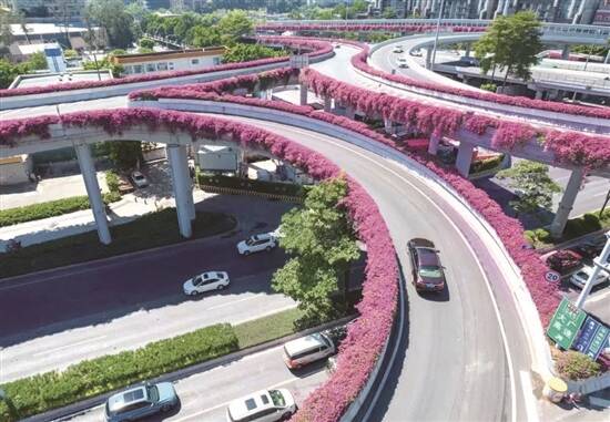 簕杜鹃绽放在广州市区的立交桥上 (图源:广州新闻发布) |
