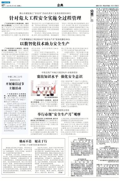 广东建设报讯 记者陈欢,通讯员黎汉雄、闯恒海报道:近日,2024年广州市房屋建筑工程“安全生产月”现场观摩交流会暨2024年黄埔区建设工程“安全生产月”现场观摩会主会场在广州黄埔