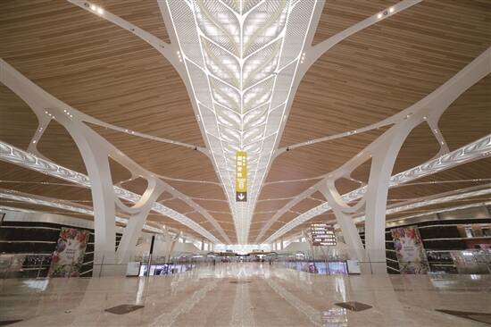 广东建设报讯 记者唐培峰、通讯员祝健轩报道:10月30日,广州白云国际机场T3航站楼投入运营,第五跑道同步投运,标志着广州白云国际机场将进入“五条跑道、三座航站楼”超大规模运行时代,成为中国民航首个五条商用跑道运行的机场,助推粤港澳大湾区“世界级机场群”加速形成。 广州白云国际机场三期扩建主体工程按“精品工程、样板工程、平安工程、廉洁工程”精心组织,用5年时间,新建两条跑道、一座航站楼以及相关配套设施。 其中,T3航站楼建设仅用4年多的时间,一座“羊城花冠”的地标性城市门户形象便已然成型。航站楼建筑造型以“花”为设计主题,融入“云山珠水”“白云云海”“花城”的广州特点,其造型如鲜花盛放,形成“羊城花冠”建筑意象,成为宣传广州城市门户形象的地标性建筑。 室内以“花开穗满”作为主题设计,三排大跨钢结构花冠柱,结合“花”为骨架的办票大厅的吊顶,“稻穗”型天窗滤光器,首创“花”型办票岛,“花蕾”型的玻璃穹顶,营造了清新愉悦的出行体验。 T3航站楼在设计上突出机位多、效率高的功能。造型上收窄东西两翼,结合H型与X型的组合优势,也像是一座地面上的“小蛮腰”。这一设计有利于缩短旅客从T3航站楼中央区域至四个指廊登机口及中转流程的平均步行距离,既满足旅客快捷乘机的需求,提升旅客候机乘机的舒适度,也实现更多机位同时独立运行,达到空侧运行效率最优的目的。