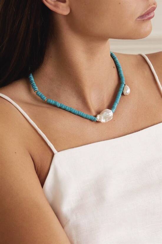 平平无奇的珍珠首饰,并不是éliou的风格,设计师将固有观念中稍显老气的珍珠,拼接上童趣十足的彩色珠链,设计出珠宝的混搭feel。其实不同材质结合的首饰设计并不少见,但要如何在两种完全不同的风格之中找到平衡彼此的方式,就很考验设计师的功力,不同于其他繁复的镶嵌造型,éliou用了最直接纯粹的拼接方式,效果也不错。这样的设计令消费者体会到,买一条相当于拥有了两条的快乐,还能搭配更多不同的衣服,实用性很高。