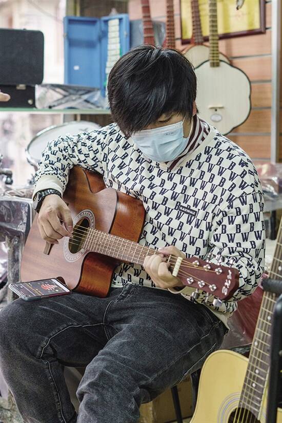 接受Color记者采访嘅当日,丁政凯係专门来到广州,探寻广州嘅乐器街。走入广州老城区,睇到极有历史气息嘅骑楼、旧式风格嘅店铺招牌,他觉得广州真的是个很有feel、好值得探访嘅地方。平时擅长钢琴及吉他的他,同时亦识得好多其他嘅乐器。逛乐器街嘅同时,佢亦俾咗唔少新手入门时候拣乐器的建议。他以钢琴为例,建议一般新手可以挑选数码钢琴为入门琴,一来现时的数码钢琴无论在声音及触感上,都已经制造得非常接近钢琴的音质及触感,二来数码钢琴比起钢琴会更便宜,体积比钢琴小一啲。吉他方面,则需注意弦线同指板之间嘅距离,新手入门建议选取弦距较为近嘅吉他,弹奏起来手指亦容易按。