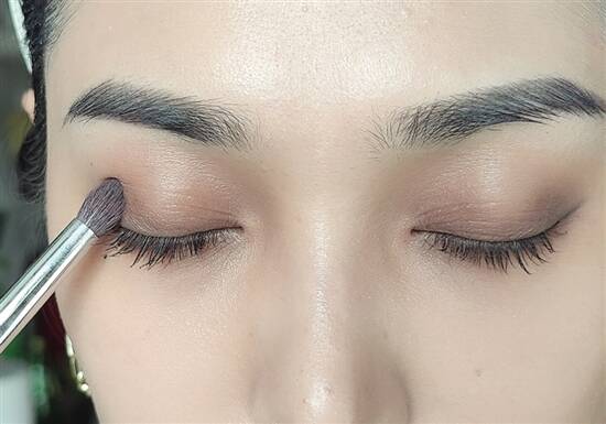 1 哑光眼影 沾取哑光啡色眼影涂抹于整个眼窝部分