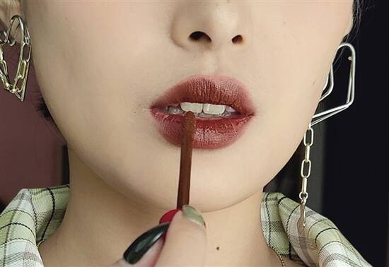 4 唇色 选用巧克力榛子、棕橘调的唇釉,无敌显白。