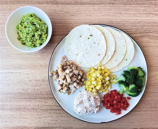 全麦卷饼 玉米 西兰花 甜椒 吞拿鱼 鸡胸肉 牛油果酱