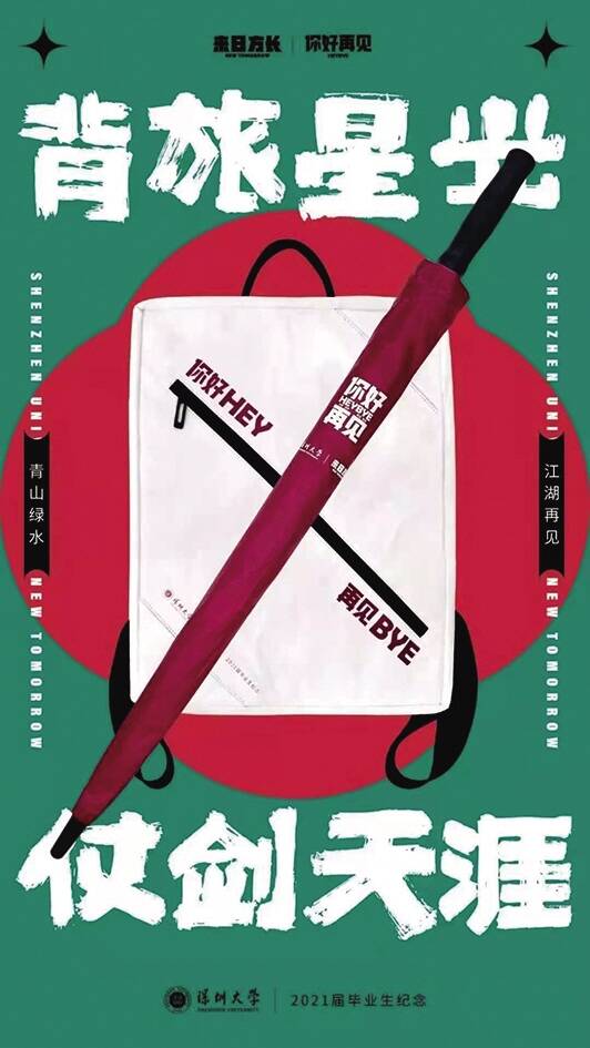 背包+雨伞的组合回归,主题为「你好再见HEY BYE」。“深大”纪念款雨伞,采用与2019年的来日方长款一致的设计风格,带上它遮风挡雨,不畏前行,仗剑天涯。背包沿用“杜邦纸”材料,柔软而坚韧,使用时会形成独一无二的自然褶皱痕迹,背上在“深大”的回忆,江湖路远,来日方长,有缘再见。