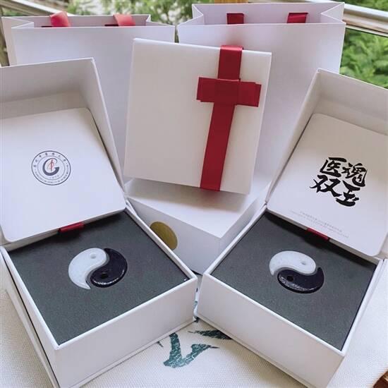 广州中医药大学为全校毕业生送上黑白双玉一对,名为“医魂双玉”。白玉代表“虎踞杏林春日暖”,黑玉代表“龙蟠橘井泉水香”,两则都係“悬壶济世”嘅典故。