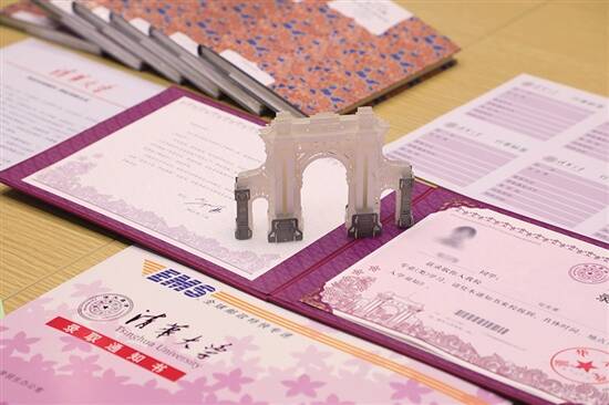 今年延续了往年的立体设计并且全面升级。先由激光雕刻结构,再由手工拼接到通知书上的纸雕,完美复刻了具有122年历史的清华园二校门,颜色更亮丽持久,立体结构更稳固。将它放在逆光处,光影透出的建筑线条,称得上是录取通知书界的“最强防伪码”。