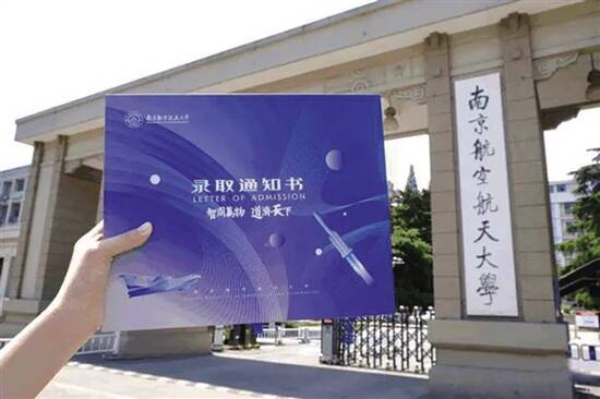 录取通知书第一页的立体层叠纸雕上,有长征五号火箭、北斗组、C919客机等,都是南航人近年来参与研发的国之重器,堪称“带着全宇宙的祝福”。通知书特设盲盒,每位新生都将收到包含南京航空航天大学校名、校徽以及2个随机放置的徽章。