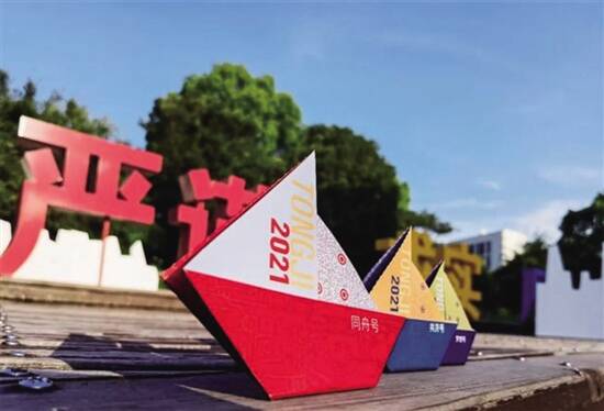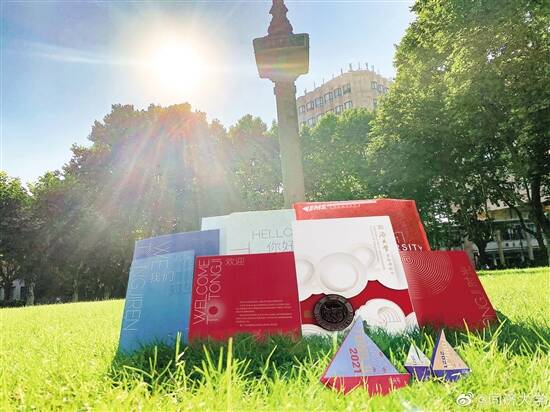 通知书封套正面是一枚印有同济大学校徽的冰箱贴,象征“继往开来”。背后有一份“造船指南”,可以把3张折纸按折痕折叠成“同舟号”“共济号”和“梦想号”三艘小船。更为珍贵的是收录了同济档案馆藏的20篇学长笔记的“时光笔记”,对新生而言有如传家宝。