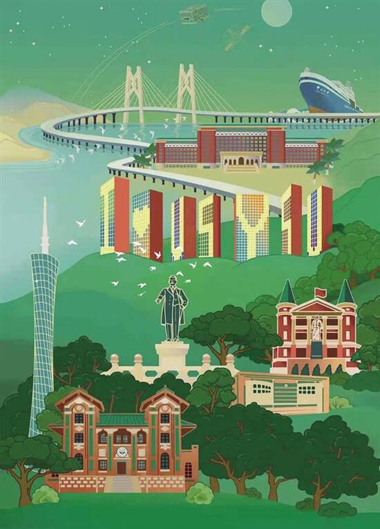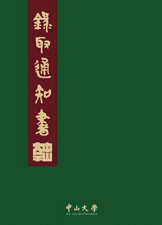 封套画中的建筑是中山大学怀士堂前、孙中山先生手书的十字校训,“录取通知书”为中山大学古文字学教授陈炜湛亲笔所书,翻页插画中展示的是中山大学“三校区五校园”办学格局,第三页是校长寄语书。已充值10元的交通卡和校徽,是中山大学的老师和学长学姐们送给新生的礼物。