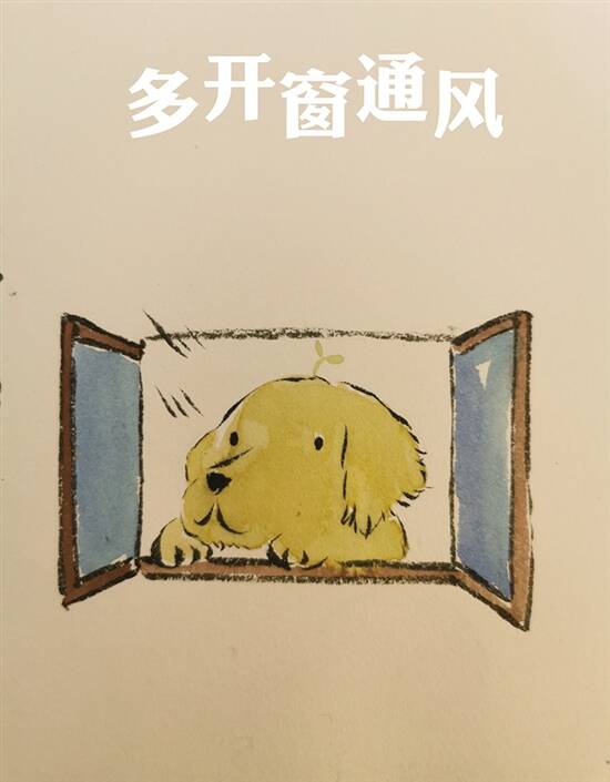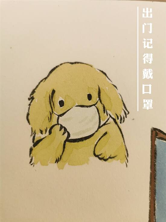 其实,为抗疫而画,陈志杰不止这一次。2020年新冠疫情期间,陈志杰以家养的小黄狗为形象,创作了一套憨状可掬的“小狗戴口罩”“洗手手”“多开窗通风”等主题的防疫宣传画。