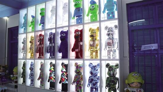 展览一共有四个展厅,分别系Be@rbrick、巴士光年、哆啦A梦、迪士尼四个主题,大厅仲有奥特曼、钢铁侠等藏品。每一个展区都有唔同嘅特色,而且一部分仲可以零距离接触,意思就系你完全可以揽住只哆啦A梦嚟影相啊!主理人话"虽然有啲藏品比较珍贵,但我哋都系想尽量回归到佢系一个玩具嘅本质,可以令嚟睇嘅人真正体验到玩具嘅乐趣。"线上商城亦同步推出好多潮玩与周边可供购买,除咗一楼不定期转换主题嘅展厅之外,二楼艺廊也会经常与不同嘅艺术家和潮流品牌合作举办展览,未来嘅无限可能性大家可以期待一下。