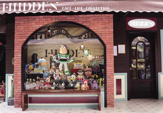 沿住居民社区行入小巷,一个圆拱形嘅复古橱窗出现系眼前,入面放满咗各种充满童年回忆嘅公仔:巴斯光年、米奇老鼠、唐老鸭、麦当劳叔叔、加菲猫……令人差啲以为自己误入卡通世界。