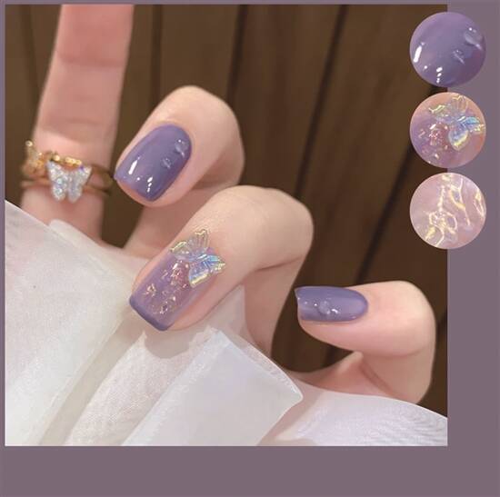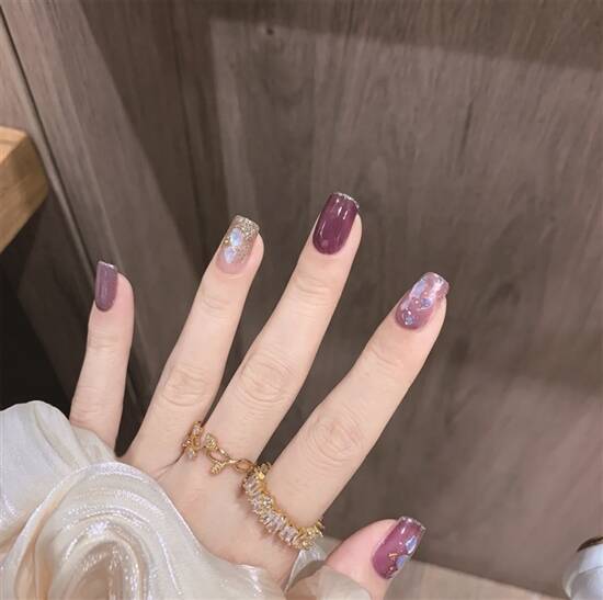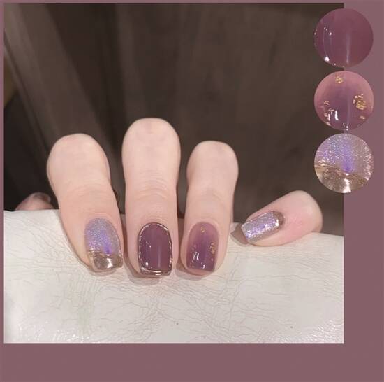 大红大紫都係新年嘅选择!紫色一般都係高贵典雅嘅象征,唔单止有气质还巨显白!例如呢款晶莹剔透嘅葡萄紫色,透过渐层与霓光嘅搭配,再加上银粉珍珠作为画龙点睛;仲有啲款式有金箔小花同坠饰,更添女人味,端庄、耐看又高级,出席正式场合非常讨喜。如果有中意亮片嘅小仙女,咁就啱晒似独角兽眼泪般梦幻嘅款色,霓光与亮片相结合显得非常独特,波光粼粼好迷人。