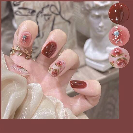 新年新篇章,肯定要“红”运当头啦!“开年红”美甲,除咗用大红色做基础色之外,为咗同节日气氛更融合,美甲师转转仲喺大红底色中加入金色闪粉做点缀,多咗金灿灿的元素,就有了“镀金”嘅视角效果。转转话,如果觉得唔够闪,仲可以加啲闪烁的星星,从指间开始,做最耀眼嘅小仙女!可以用红色做底色,也可以选择“红”系列图案,比如还原度极高嘅车厘子图案就好受欢迎,Sweet又juicy嘅车厘子,显得乖巧又精致,啱晒娇滴滴嘅萝莉妹子,“红”系列特别显肤白,几乎适合所有人。