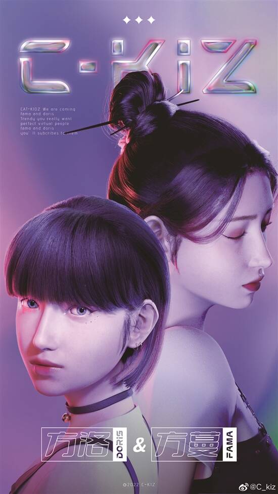 近年虚拟偶像越来越heat,twins组合有得天独厚嘅话题优势,新twins音乐组合C-kiz结合两个“大热”,唔知大家又like唔like咧?据介绍,佢哋嘅诞生纯属意外,宠物猫出手帮突然“宕机”嘅程序员完成咗代码,于是一对性格迥异嘅虚拟姊妹花就此面世。性格文静的姐姐“方蔓”爱传统文化,鬼马好动的妹妹“方洛”中意四围探店,而音乐就係两姊妹嘅共同爱好。佢哋同所有后生仔女一样,贪靓爱玩、中意甜食,得闲仲会去“潮到风湿”嘅东山口打卡影相添。今年春节,姐姐“方蔓”登上广州台元宵特别档《锦绣湾区一家亲》的舞台,与本土歌手阿细共同演绎咗歌曲《细界》,造就咗广州台首个真人搭档虚拟偶像嘅演唱节目。初次探索现实世界,C-kiz有啲小心翼翼,相信不断尝试、慢慢成长之后,佢哋会有更多惊喜俾大家。
