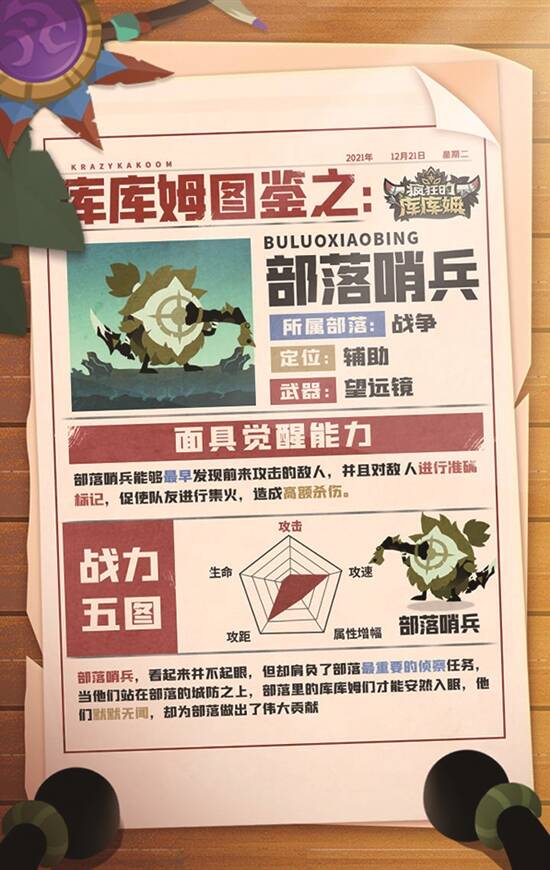 《疯狂的库库姆》係一款集休闲养成、快速对战于一身的趣味塔防手游。你将变身远古部落的酋长,穿越到神秘大陆上,邂逅被称为“库库姆”的神奇萌物。佢哋戴着花纹各异的面具,被赋予各种奇异的超能力,佢哋可能可以召唤野猪、占星算术、召唤闪电,或者使用吹箭、飞刀、长矛等各种冷兵器克敌制胜。游戏中有数十种不同的“库库姆”供大家收集,数百种搭配组合等大家解锁,不同的能力互相搭配,可以获得各种超乎意料的特殊效果,尽情大胆尝试,开发出属于你的最强阵容!