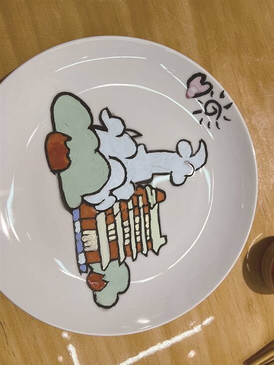 咪以为广彩就係喺个瓷碟上面画下水彩画啊,要完成一个广彩作品,都需要经过繁琐嘅工序,一啲都唔可以马虎噶!首先就係要选定作品嘅基础白胚,喺白胚上按照主题设计的主画面,用陶瓷颜料进行“写瓷黑”,即用黑色颜料素描出主画面的线条;再通过色彩的填充、调色、洗染等等步骤,最后放入锅炉烧制。廉哥拣咗广州地标“小蛮腰”嚟填色,而可乐君就睇啱咗充满羊城风味嘅五羊雕像。一开始以为just填色好容易嘅我哋,真係太天真了。原来上色的颜料会水料分离,需要用画笔蘸取再调和,点多咗水会太稀、颜料就容易流到出界,但太干又唔容易着色。瓷碟上的线画好多细节,有啲微细嘅地方真係好考眼力。通过我哋嘅努力,成品确实令人惊艳,不过最终成色都仲係要通过烧制先会显现,令大家十分期待!