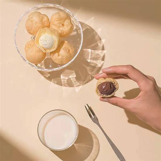 同样甜蜜的雪糕同甜品,如果叠加一起,咁就会係甜蜜的暴击。丝滑浓郁嘅香草味冰淇淋,搭配清爽嫩滑嘅树莓果酱奶冻,就组成咗草莓芝士蛋糕风味冰淇淋,双重嘅口感,令你每一啖都食到满满嘅幸福感。亦有唔少商家将烘焙同雪糕组CP嘅,好似呢款小泡芙雪糕,外壳係酥脆松软嘅泡芙,夹心係绵密嘅香草冰淇淋,一啖一个,外酥内软,口感好特别!仲有一款威化饼夹心冰淇淋都值得尝试,外观同普通威化饼冇乜区别,但一啖咬落去,嗰种冰爽甜蜜嘅感觉又会令你回味无穷。