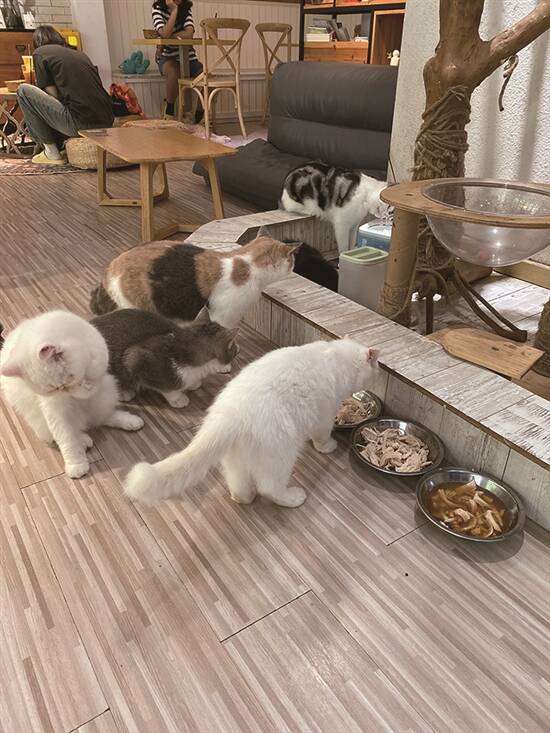 位于江南西内嘅呢间猫咖,温和嘅暖光散落喺圆木凳上,客人们可以好似喺屋企咁随时席地而坐,见到呢啲懒懒散散的小猫咪,边撸猫边食嘢,心情都可以更放松。店内嘅十几只猫猫,大部分都跟咗店主好长时间啦!店主曾经喺广告公司翻工,公司同事都会救助好多流浪猫,仲有专门嘅养猫房,大家每日翻工嘅第一件事就係变身“铲屎官”。见到猫猫数量越来越多,店主同同事一拍即合,开咗呢间猫咖店,既可以照顾好猫猫,又可以等更多人圆“撸猫梦”。为咗保证猫咪们嘅健康,店内会24小时保持恒温通风,每日亦会清洁消毒,保持一个干净企理嘅撸猫环境。