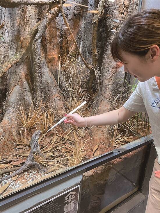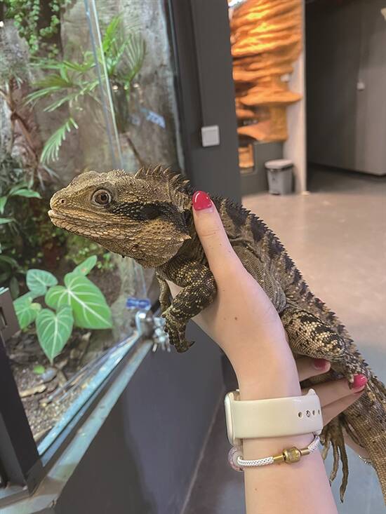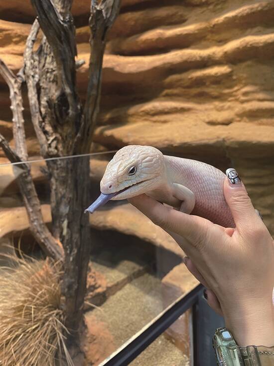 爬行类动物大都皮肤干燥,表面长有角质鳞片,外表望落唔多可爱,甚至有啲盛气凌人得人惊,但店家介绍,其实大部分嘅爬宠性格都好温柔噶!例如伞蜥、鬃狮蜥等,外表凶猛霸气,平时喺树上趾高气昂咁,实际上佢哋係名副其实的“小吃货”,一见到店员手中有小零食,就会不顾形象秒扑埋嚟。而长鬣蜥作为怪兽哥斯拉的原型,体型庞大,又有粗大嘅尾巴,外表真係几吓人,实际上佢哋性情温顺,心思细腻。店内明星之一长鬣蜥“澳利澳”,每次都静静咁趴喺客人手上面,任人点撸都唔会嬲;面对大家的喜爱,“澳利澳”仲会歪头卖萌,镜头感天生就好掂,所以好容易俘获客人嘅芳心。