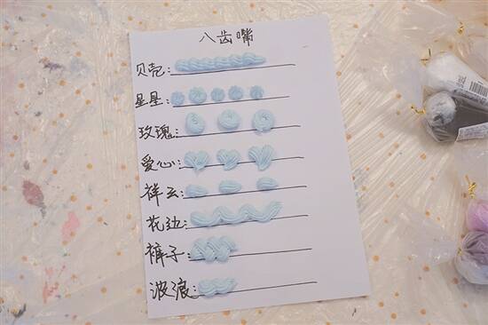 选择2-3种自己钟意的奶油胶,按照相框粗细选择合适的裱花嘴。今次我哋用的係八齿裱花嘴,可以挤出较为饱满且清晰的花纹。