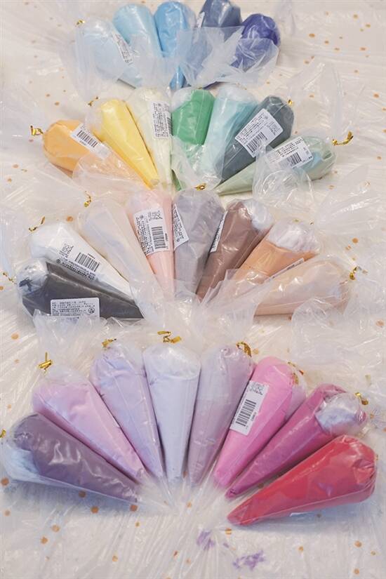 先把里边嗰层裱花袋剪开小口,套上裱花嘴,再把奶油胶往前推填满裱花嘴,最后剪开另一个裱花袋套喺外边,记得要剪大啲露出裱花嘴的花纹。