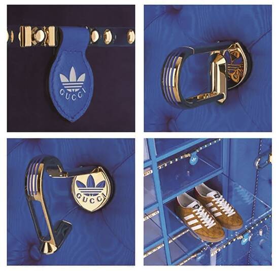 你估唔到嘅係,奢侈品都好最中意同波鞋玩联名,除咗将品牌嘅logo 、配色、标志性元素融入潮鞋外,喺鞋盒上会show出自己牌嘅奢华理念。Tiffany & Co. 和 Nike 推出咗专为 Air Force 1 1837 设计咗一个纯银鞋盒,因为工艺复杂、材料成本同手工制作成本高,呢款鞋盒价值上万元,限量只得一个。Air Jordan都越玩越高端,为自己旗下嘅潮鞋配置咗手提箱、工具箱式嘅鞋盒,增加大家嘅开箱嘅仪式感,令波鞋变成精致嘅艺术品。Gucci同Adidas联名定制嘅鞋盒,简直就係鞋箱或者衣帽间!可以同时放入12对鞋,每个鞋位有单独的玻璃挡板,底部配有皮革柜筒,另一边係双开门设计,有可拆卸嘅沙发凳同埋专属试鞋镜,柜门上配有贵金属制作的挂钩,即係仲可以将靓鞋show出来。