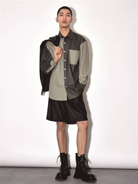 UR男装开襟衬衫+宽松抽绳短裤